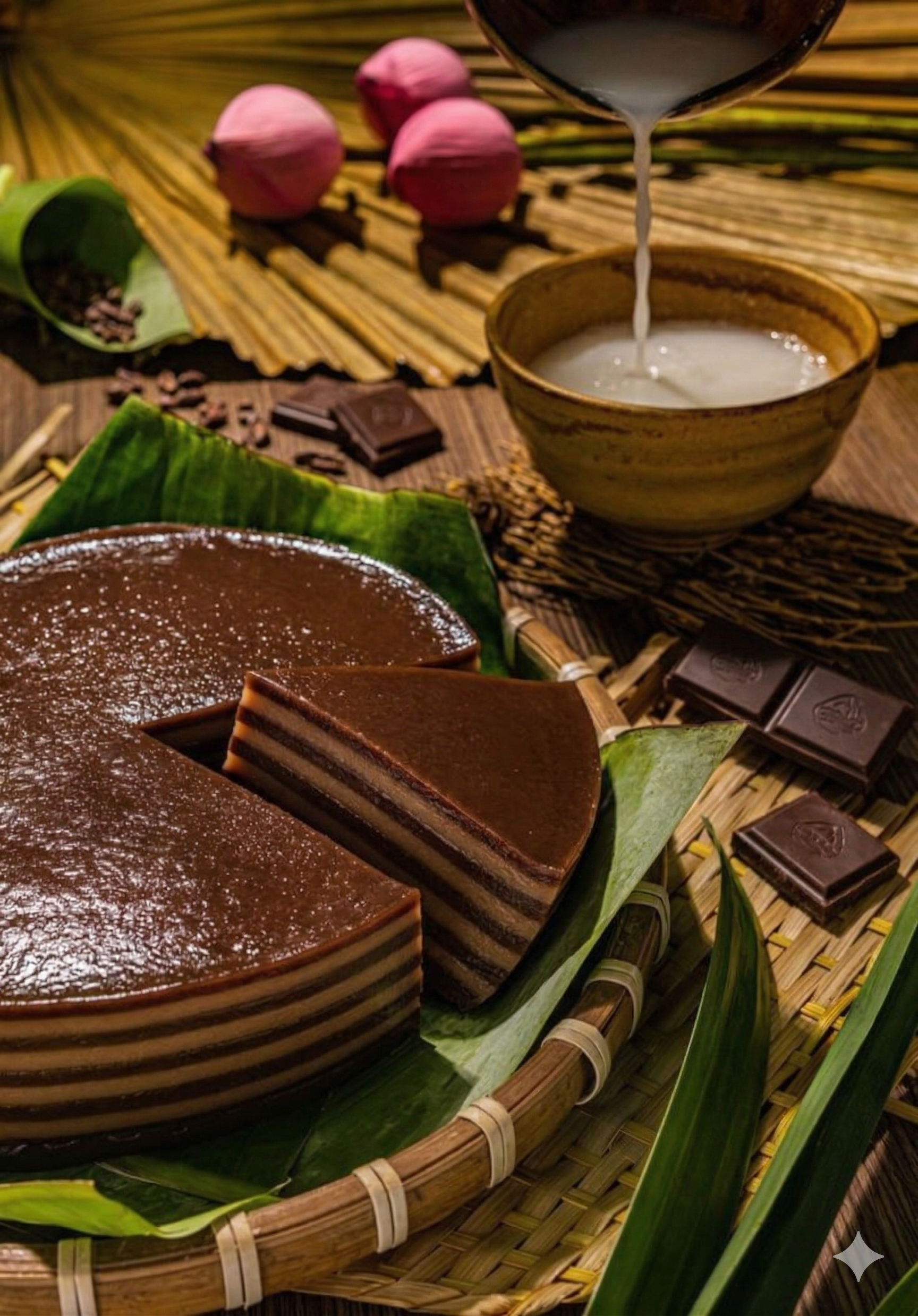 Thưởng thức thức quà quê mộc mạc nhưng tinh tế: Bánh Da Lợn dẻo dai, thơm nồng hương lá dứa tự nhiên xen kẽ lớp nhân đậu xanh bùi béo, đậm đà nước cốt dừa.